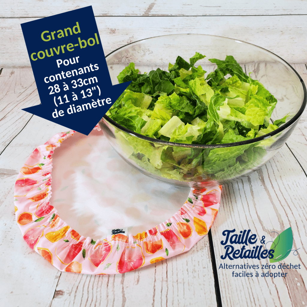 Pour couvrir le bol de salade, le grand couvre-bol est idéal. Il convient aux contenants ronds ou carrés de 28 à 33 cm de diamètre. Découvre tous ses avantages et usages dans cet article.