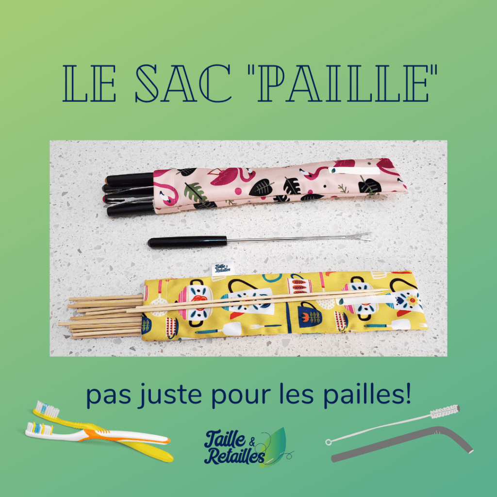 Le sac pour pailles peut servir pour toutes sortes d'objets allongés : baguettes à fondue, brochettes, brosse à dents, crayons, ustensiles... Découvre ce format pratique et polyvalent dans cet article.