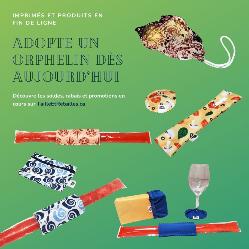 Produits orphelins en tissus épuisés et lignes de produits en liquidation.