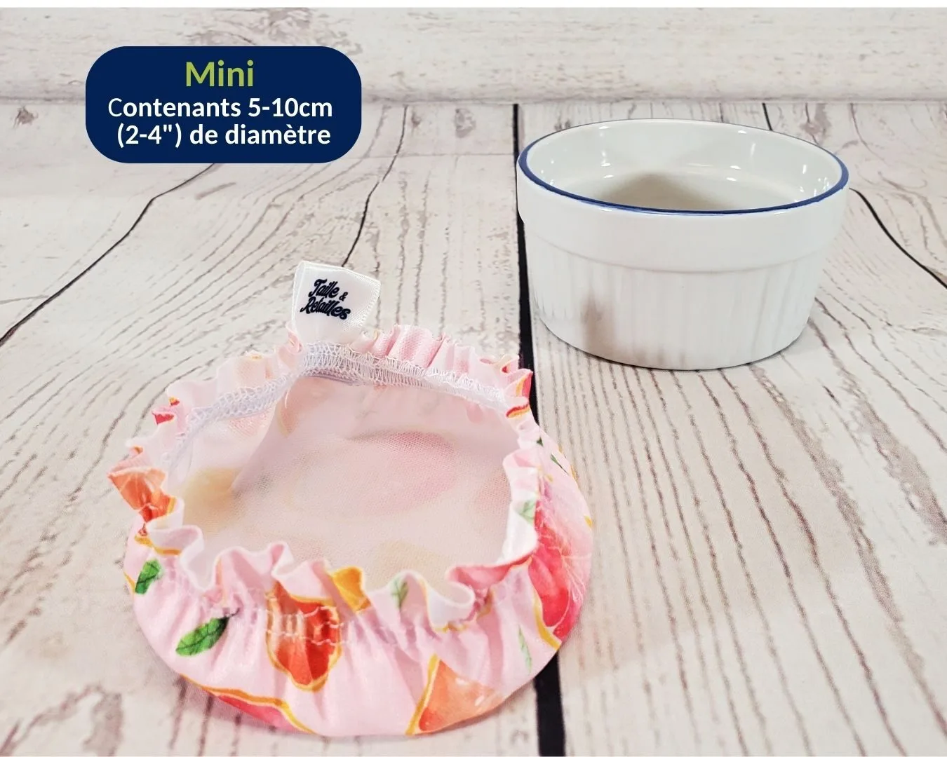 Fabriqués en tissu PUL (polyester laminé d’uréthane) de grade alimentaire, les couvre-bols sont imperméables, résistants et conçus pour un usage alimentaire sécuritaire.