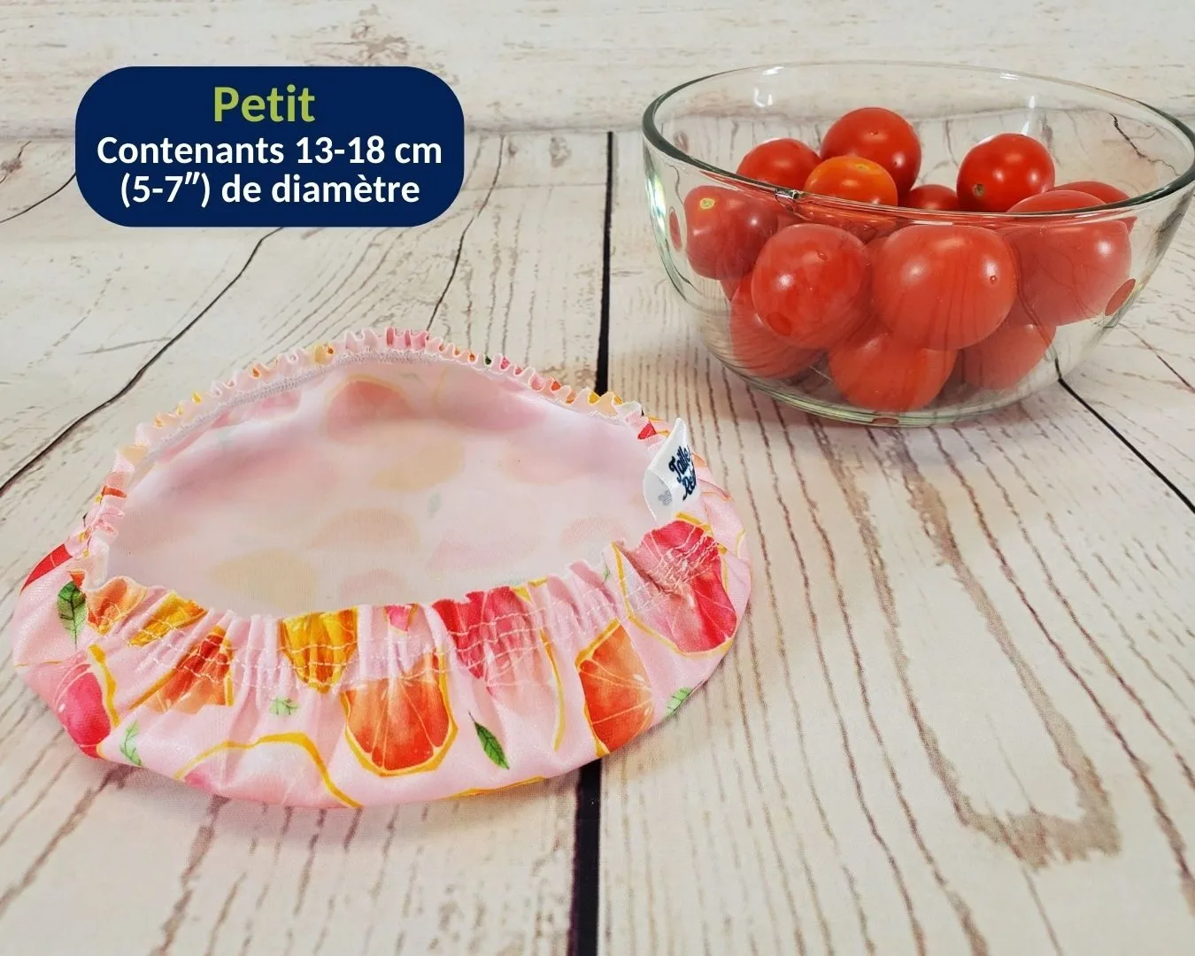 Les couvre-bols réutilisables Taille & Retailles remplacent efficacement la pellicule plastique jetable. Imperméables et étanches, ils conservent l’air et l’humidité à l’intérieur de vos contenants, tout comme le ferait une pellicule plastique… sans le gaspillage.