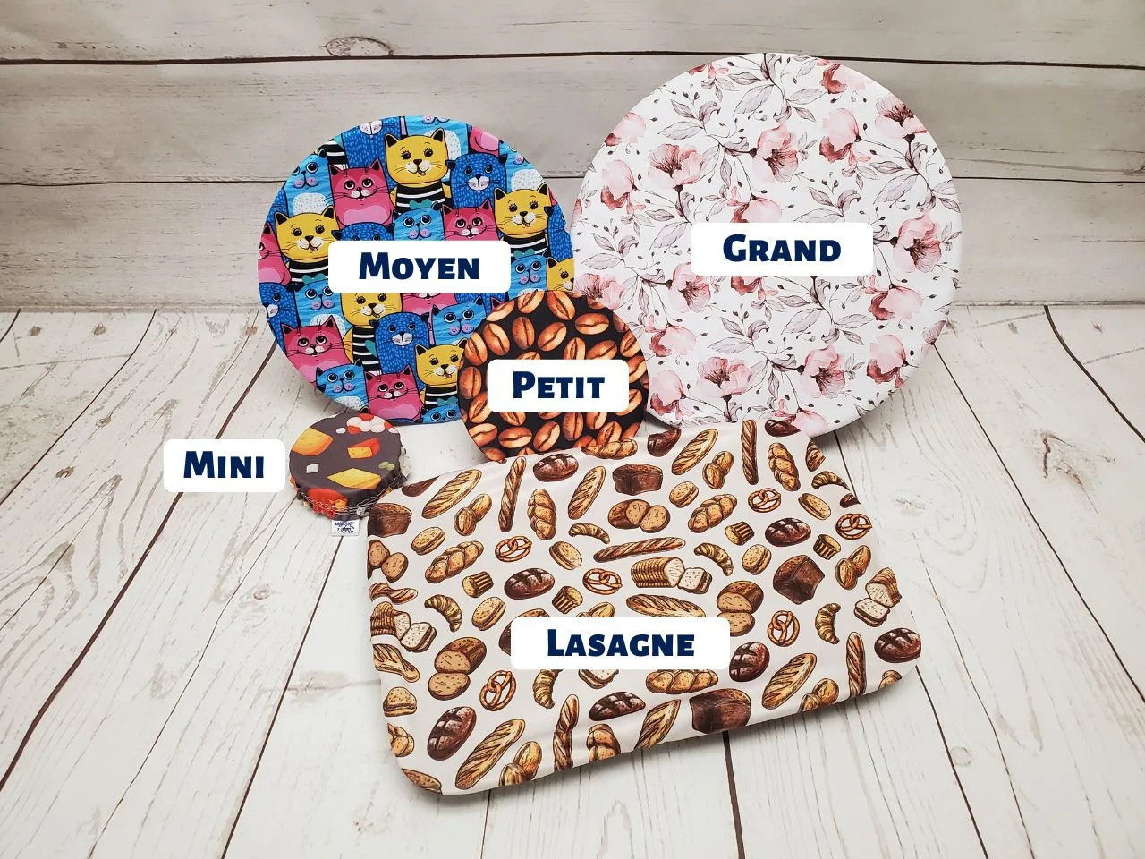Fabriqués en tissu PUL (polyester laminé d’uréthane) de grade alimentaire, les couvre-bols sont imperméables, résistants et conçus pour un usage alimentaire sécuritaire.
