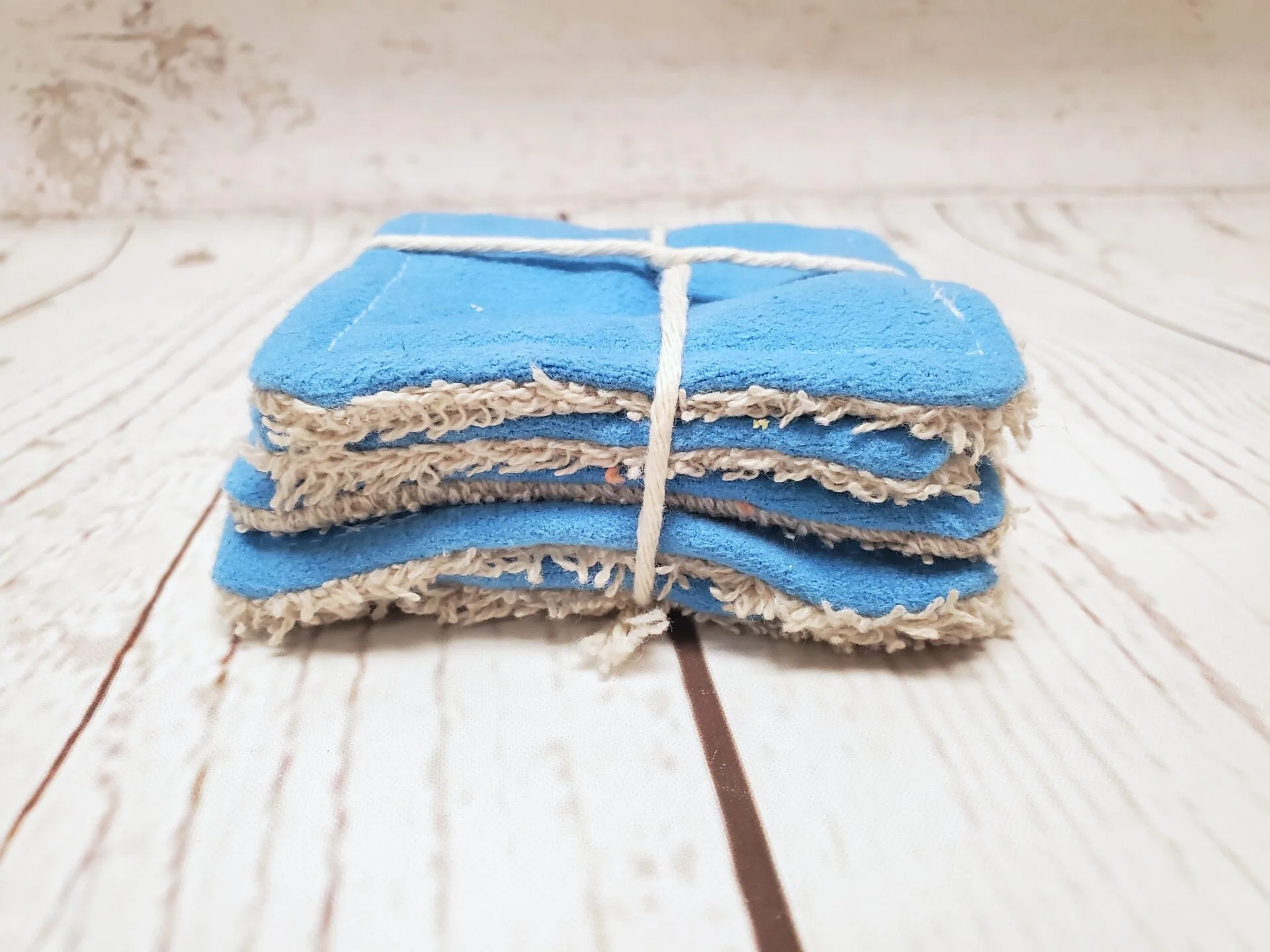 Chaque lingette est fabriquée à la main, mesure environ 9 × 9 cm (3½ × 3½ po) et présente une surpiqûre tout autour. Nous omettons volontairement toute étiquette pour préserver le confort de la peau.