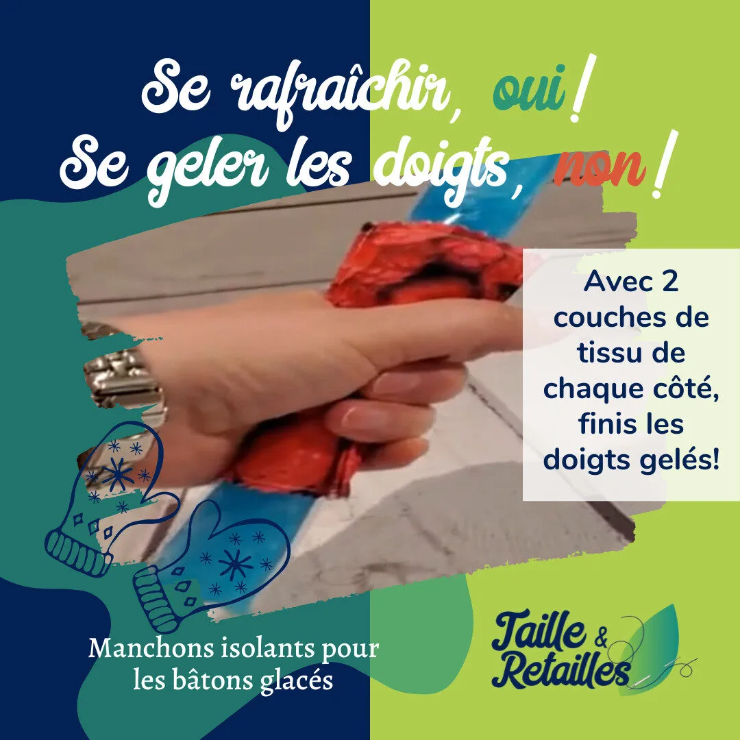 Le couvre-bâton glacé Taille & Retailles est simple, écologique et coloré, parfait pour les petits et grands gourmands. Fini les mains gelées, vive les friandises glacées sans gaspillage!