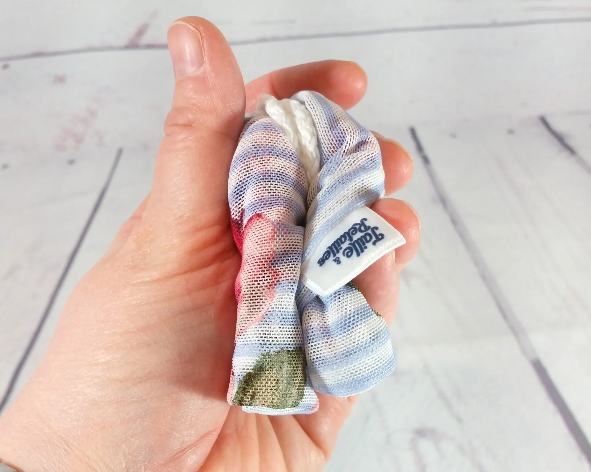 Le sac filet passe à la machine et sèche rapidement à l’air libre.