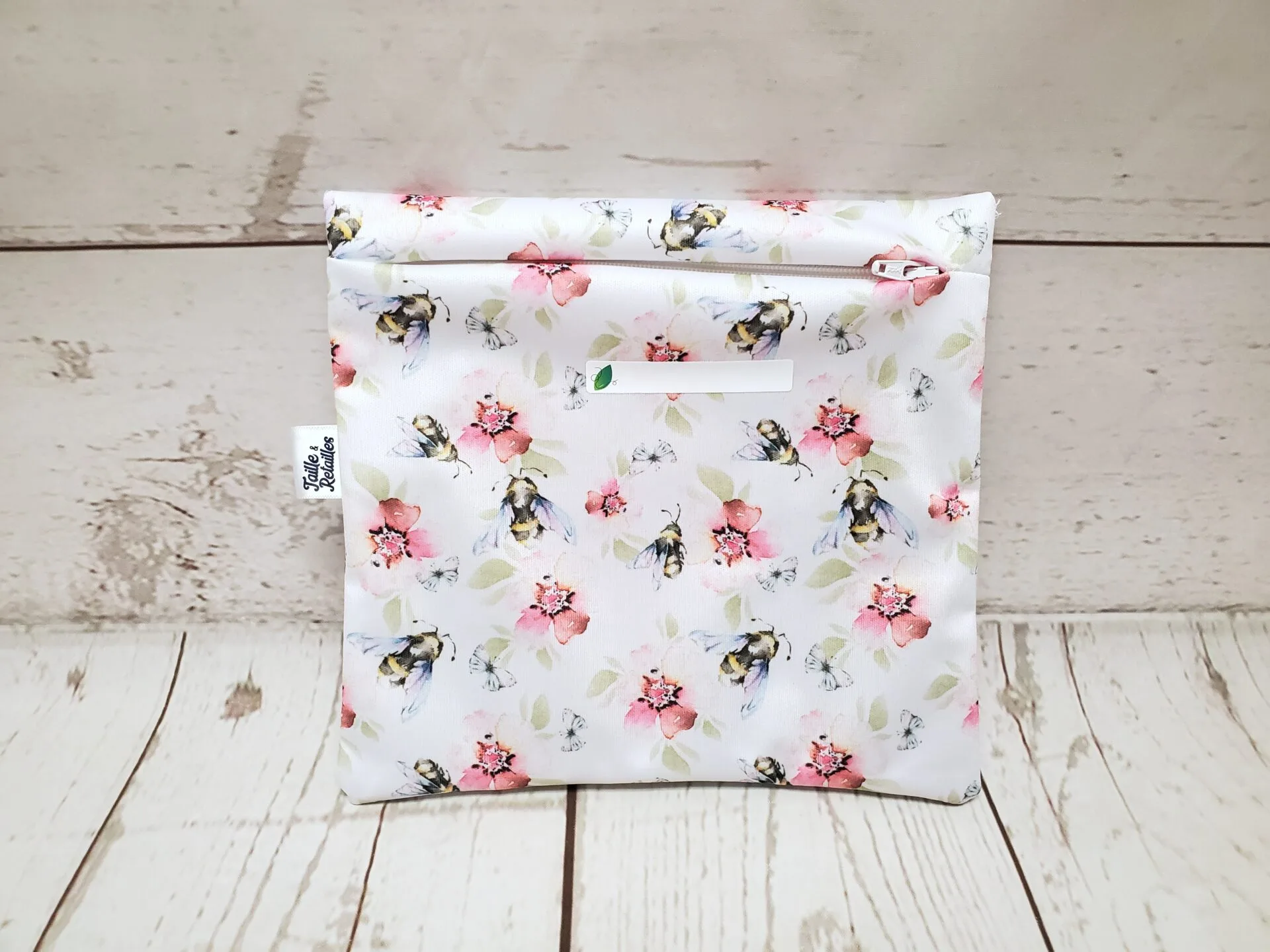 Côté entretien, les sacs alimentaires se lavent facilement à la main en nettoyant l’intérieur avec un linge humide savonneux. Ils peuvent aussi être lavés en machine, retournés à l’envers, à l’eau tiède ou froide. Ne pas javelliser, ni utiliser d’assouplisseur. Se sèchent à l’air libre ou à la machine à basse température.
